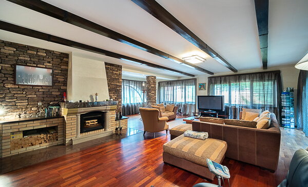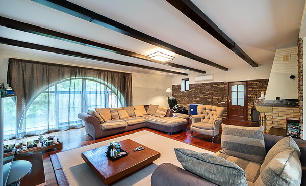 На участке 24 сотки с ландшафтным дизайном расположен жилой дом 450 кв. м и отдельностоящий гараж с квартирой для персонала. Особняк отличается прекрасной планировкой: предусмотрено все необходимое для комфортной загородной жизни. Отделка выполнена в класическом стиле с использованием дорогостоящих натуральных материалов.Цоколь: большая сезонная гардеробная, котельная, подсобные помещения, кладовая.