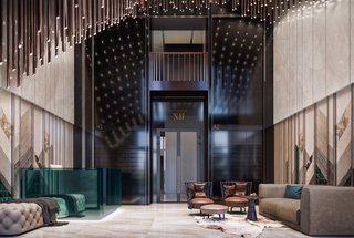 Кутузовский, 12 вдохновлён итальянскими палаццо и советским неоклассицизмом. От первых он взял дворцовую колоннаду. Пятидесятиметровые хрустальные колонны делают архитектуру изящной. В двусветном лобби высотой 9 метров колоннам вторят вертикальные панно и потолок из латунных трубок-светильников.
